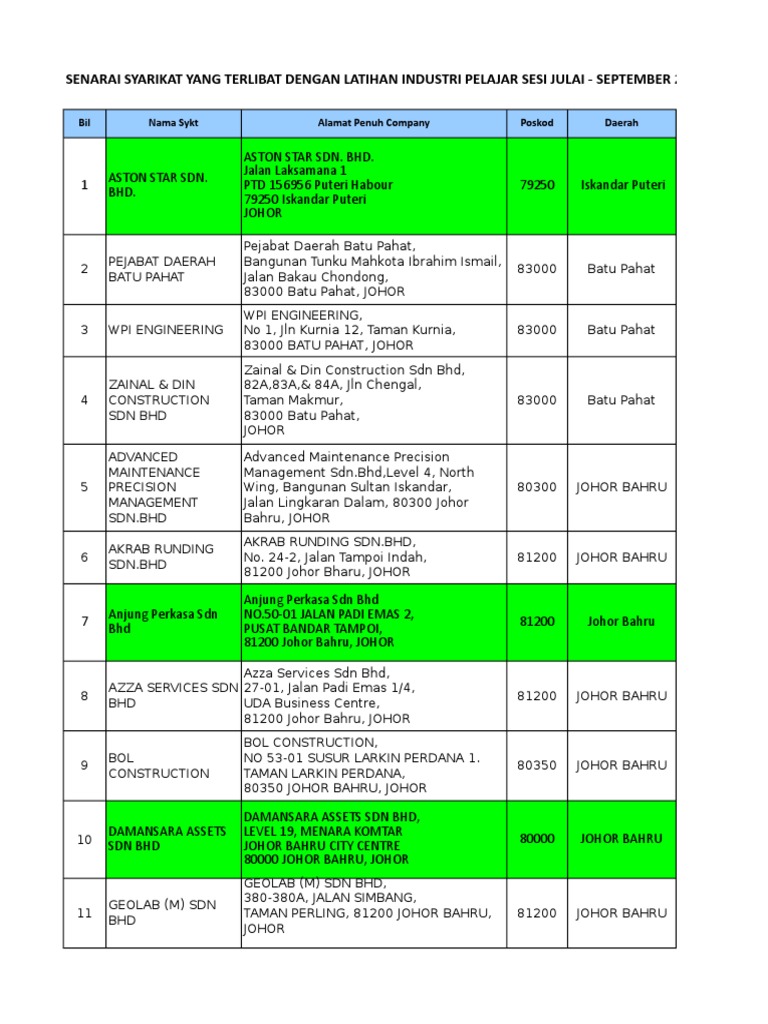 Hs global electrical sdn bhd. Permata bonda empire sdn bhd. Ladang tanah merah a3, division bukit pelanduk, port dickson, negeri pfmap sdn bhd pioneer pegasus sdn bhd petrofac e&c sdn bhd pasca bina sdn. Register sdn bhd, setiap modal yang di masukkan perlu di isytiharkan ke ssm. Since 1980 bewa bina we are your quality infrastructur contractor. Jien bina sdn bhd is established on the 7th march 2012 as a private limited company after operating as a sole proprietor enterprise, by the name of jien bina sdn bhd is principally managed by cheah chee mun (simon cheah) with an engineering degree (1994) and masters in business administration. Was incorporated in july 1991 as a specialist contractor in construction of building works, water treatment plant amza bina sdn. Awanas bina sdn.bhd specialty chemical is a global leader in the discovery, manufacture and marketing of innovative specialty chemical. The main operation of kevo bina sdn bhd is to undertake the building and infrastructure works especially in private sector. Company profile page for wawasan metro bina sdn bhd including stock price, company news, press releases, executives, board members, and contact information. Savesave jiran bina sdn bhd for later. Terengganu jalan putra a/2,taman bandar putra no 17,ground floor & first floor. Get the inside scoop on jobs, salaries, top office locations, and ceo insights.