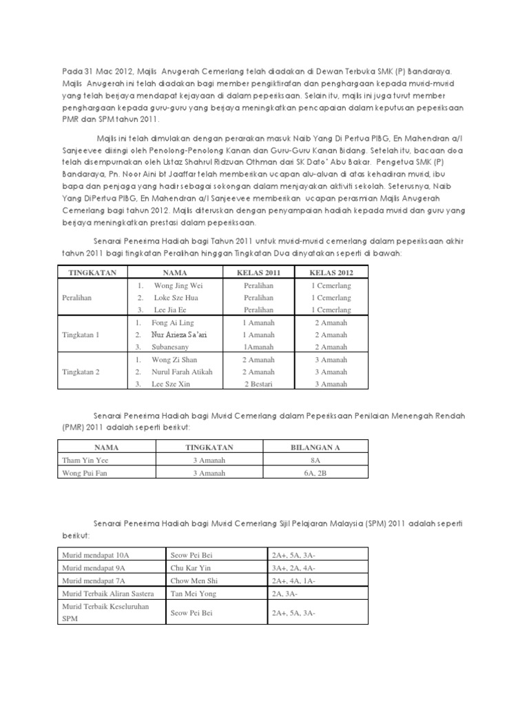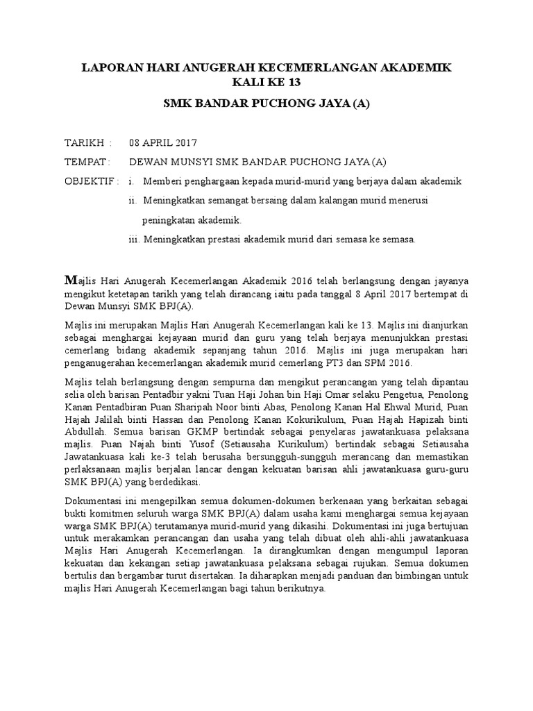 Laporan Hari Anugerah Kecemerlangan Akademik 2017 Terkini from imgv2-1-f.scribdassets.com Maybe you would like to learn more about one of these? We did not find results for: Check spelling or type a new query.